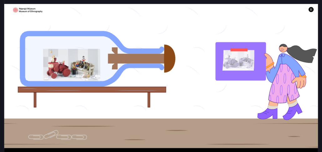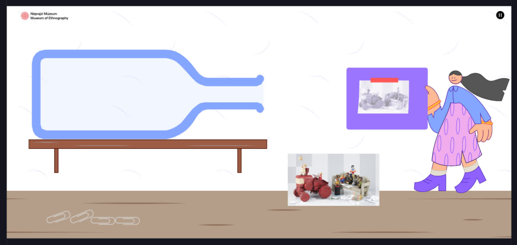 We created the Keep calm! – Patience Bottles interactive application for the Museum of Ethnography in Budapest (Néprajzi Múzeum). Designed to run on a museum touchscreen and also available online, the project invites visitors into the fascinating world of patience bottles—intricate miniature scenes built inside narrow-necked glass bottles. These objects are a celebration of craftsmanship, perseverance, and the ability to overcome seemingly impossible technical constraints.