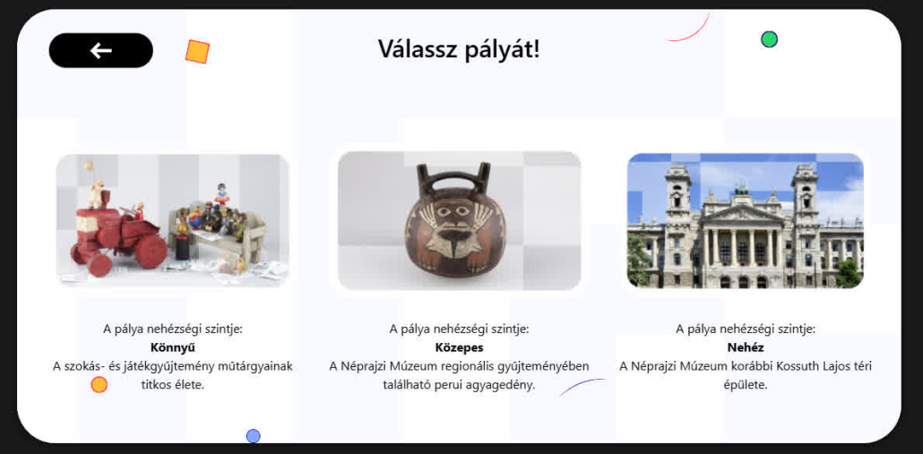 The gameplay is based on a purposely “annoyingly” precise, patience-demanding puzzle logic: the composition must be assembled through a narrow bottle opening, in a way that can’t be rushed. In keeping with the museum narrative, multiple thematic visual worlds appear (for example, preserving the museum’s former building as a patience bottle, as well as scenes composed from collection objects), while the visual language combines photo-based realism with graphic layers. The program was originally featured during the Autumn Festival period with a 14+ target audience, but the experience also works well for families and adult visitors today.